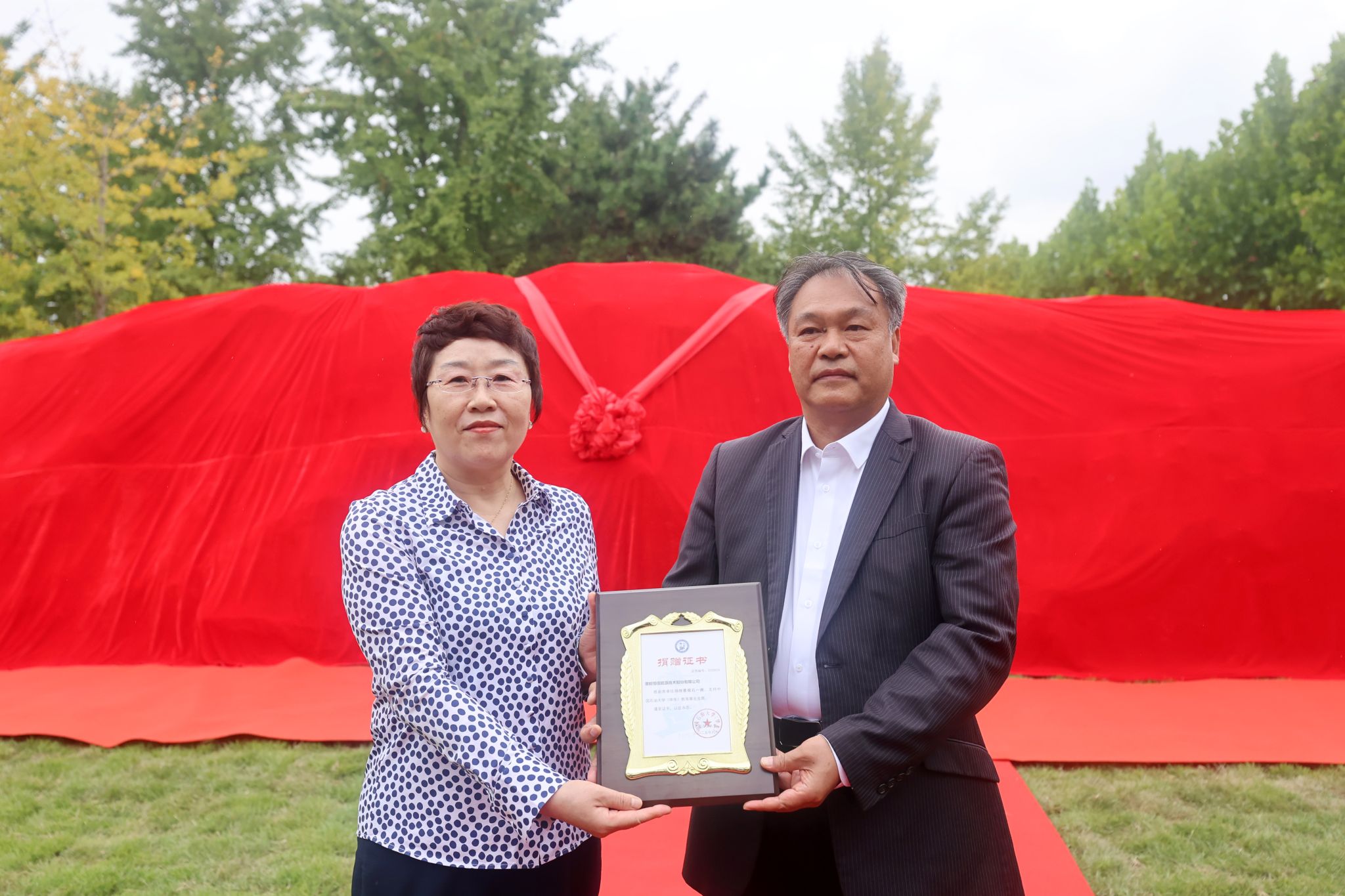 9月22日,学校举行潜能恒信能源技术股份有限公司与物探81级校友景观石捐赠仪式。副校长张玲玲,党委常委、宣传部部长赵放辉,校长助理王效美及物探81级返校校友参加活动。
