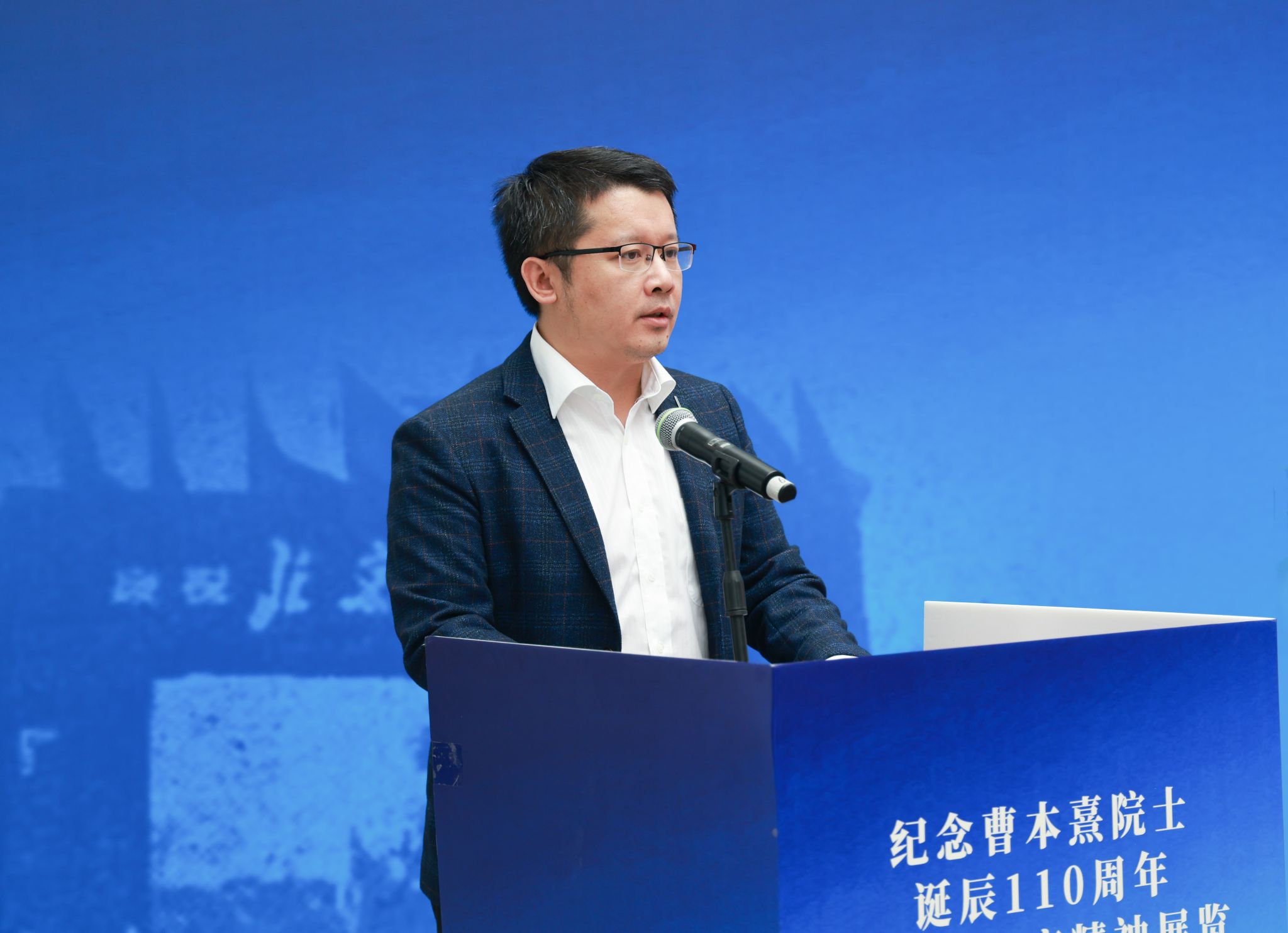 吴强明、廉凯、曹珏、黄峻为展览揭幕。戴彩丽、廉凯致辞,曹珏、化学化工学院教授金鑫发言,共同追忆曹本熹院士的卓越一生与崇高精神。