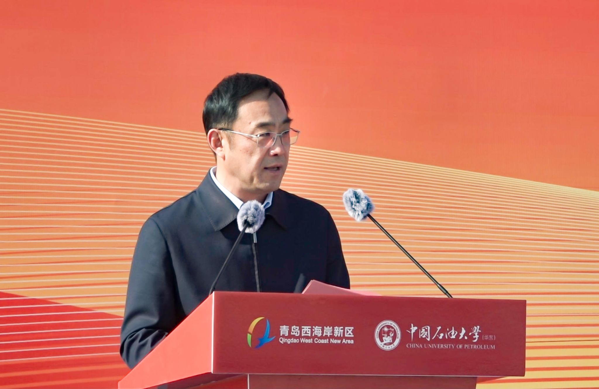 王清源代表青岛西海岸新区工委区委、管委区政府,向中国石油大学全体师生表示热烈的祝贺,向为校区建设付出辛勤努力的全体建设者致以诚挚问候,向学校多年来为西海岸新区经济社会发展作出的突出贡献表示衷心感谢。他表示,西海岸新区始终把支持石油大学等高校发展摆在重要位置,把大学生作为最宝贵的人才资源,深化校城融合、产教融合;校地双方在唐岛湾校区、古镇口校区的开发建设中结下深厚情谊,在产业人才培养、科技成果转化等方面取得丰硕成果,成为校城融合的典范;古镇口校区聚焦国家和地方重点产业发展需求,必将成为服务国家战略和区域经济社会发展的新支点;新区将一如既往支持石油大学发展,做好古镇口校区后续服务保障工作,持续完善周边配套,助力加快建设“中国特色能源领域世界一流大学”;期盼石油大学能够充分发挥学科、人才、科研优势,深度参与西海岸新区经济社会发展,携手续写校城融合新篇章。