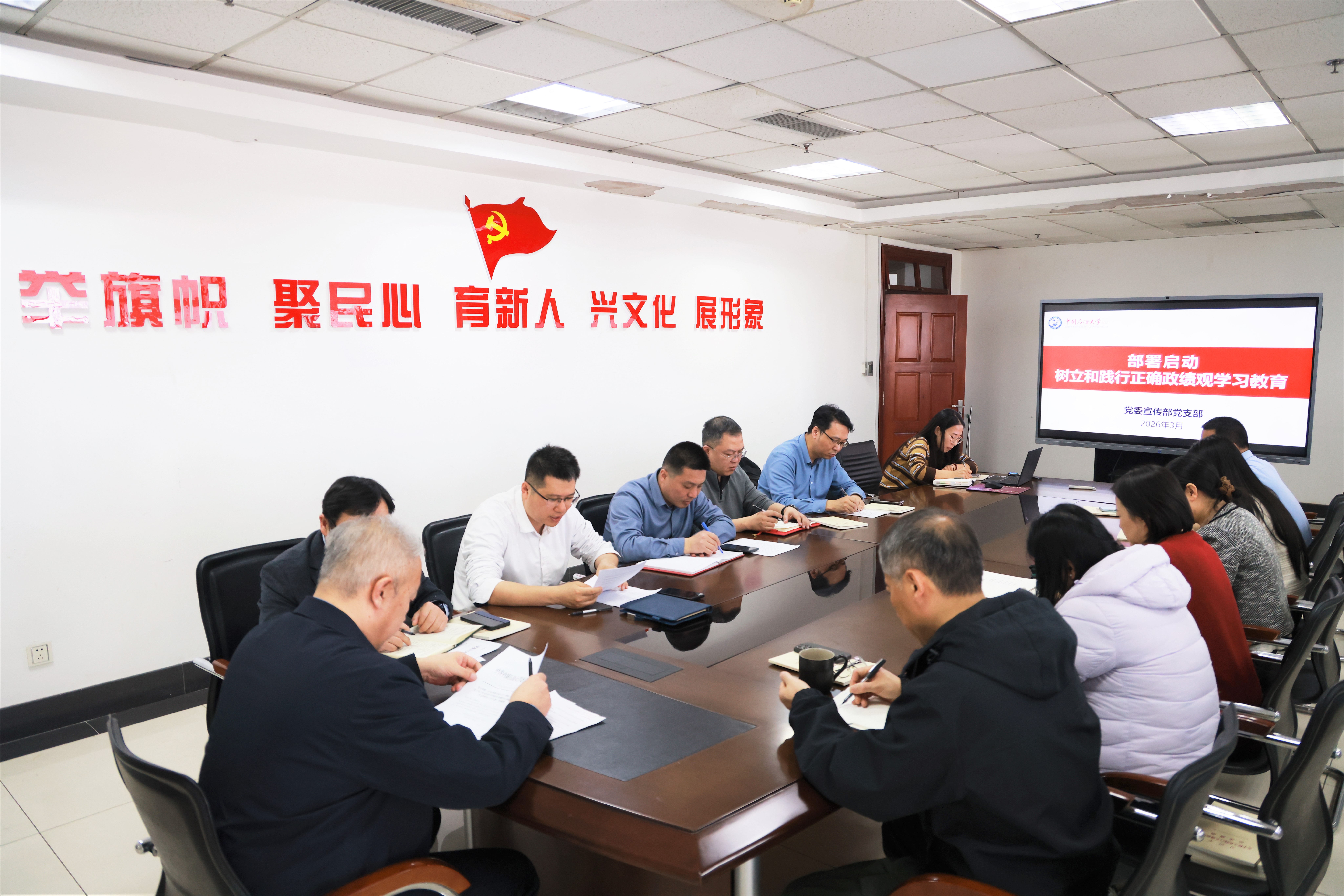 3月12日,党委宣传部党支部召开党员大会,部署启动树立和践行正确政绩观学习教育工作。会议由党支部副书记徐永涛主持,全体党员参加会议。